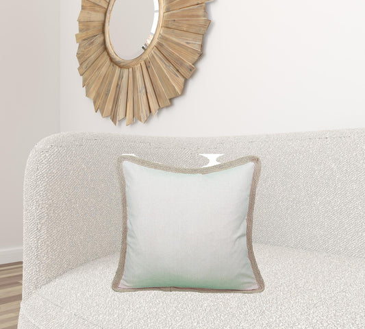 20"x20" Beige and Green Linen Blend Zippered Pillow