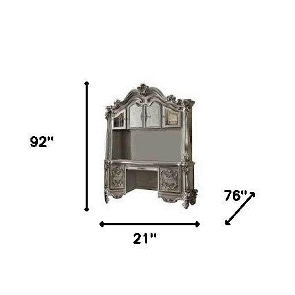 21" Platinum Solid Wood Peninsula Wall Mounted Computer Desk With Four Cabinets Five Drawers