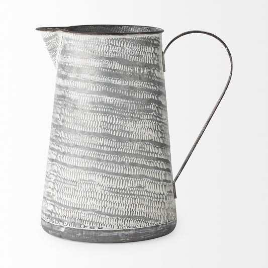 11" Metal Gray and White Cylinder Jug Vase
