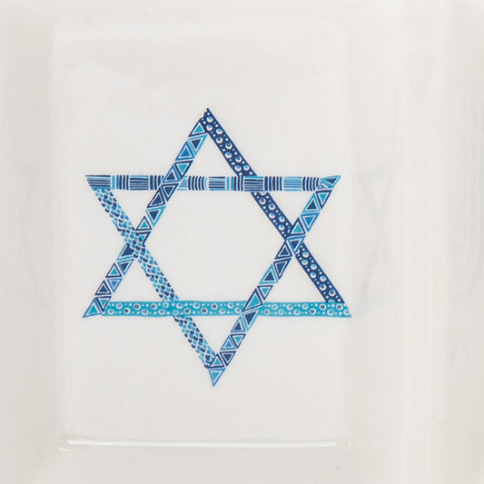 11" Blue and White Rectangular Bone China Hanukkah Serving Tray