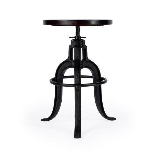 22" Brown And Black Iron Swivel Backless Bar Chair