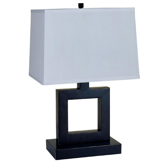 22" Bronze Open Square Table Lamp With White Rectangle Shade