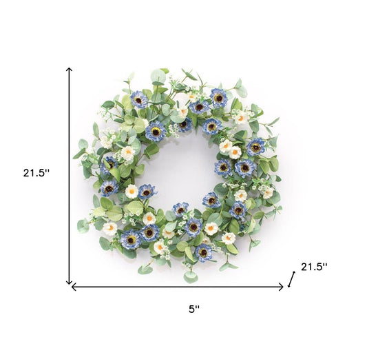 22" Blue and Green Artificial Mixed Assortment Wreath