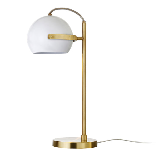 22" Brass Metal Desk Table Lamp With White Bowl Shade