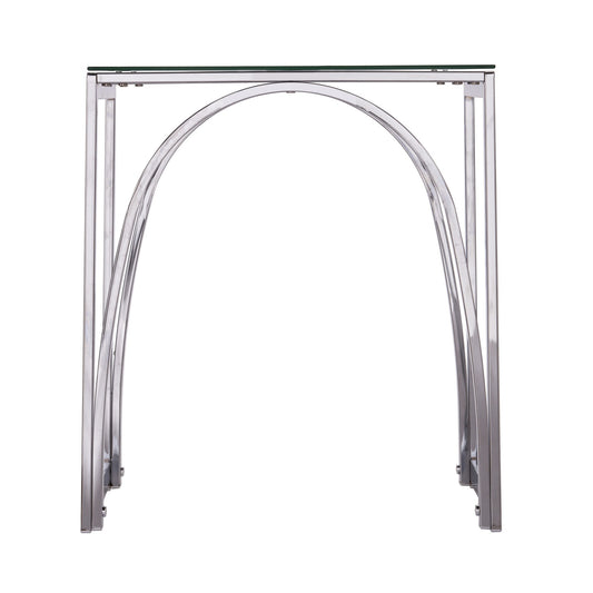22" Chrome And Gray Oak Manufactured Wood Rectangular End Table With Drawer