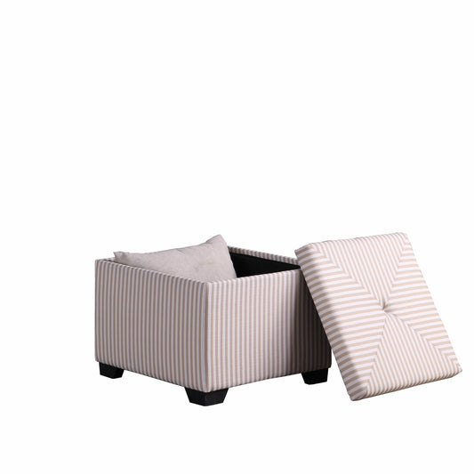 22" Gray And White Faux Leather And Black Tufted Striped Storage