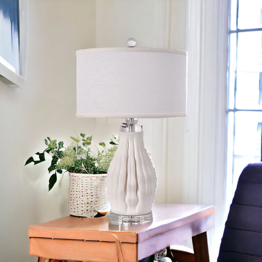 22" White Ceramic Column Table Lamp With White Drum Shade