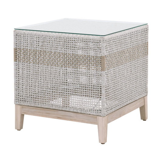 22" Taupe and White Rope and Glass Indoor Outdoor End Table