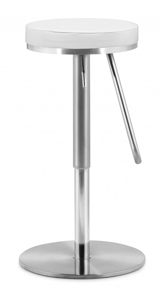 22" White And Silver Steel Swivel Backless Bar Height Chair With Footrest