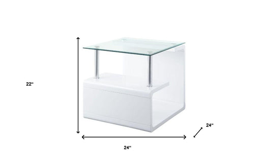 22" White High Gloss Manufactured Wood Rectangular End Table With Two Drawers