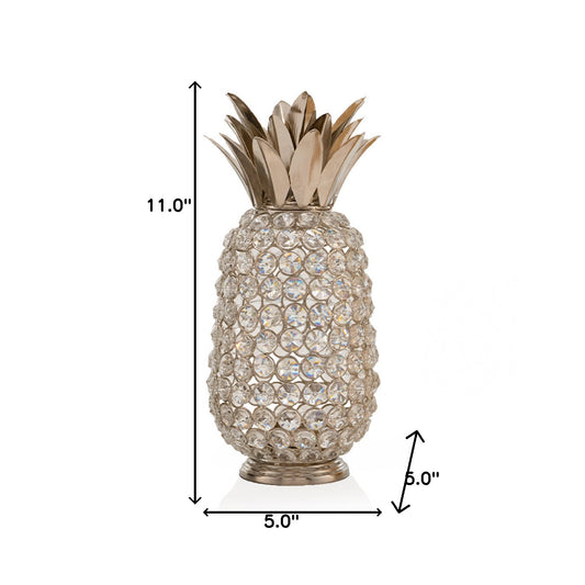 11" Silver And Clear Faux Crystal Decorative Pineapple