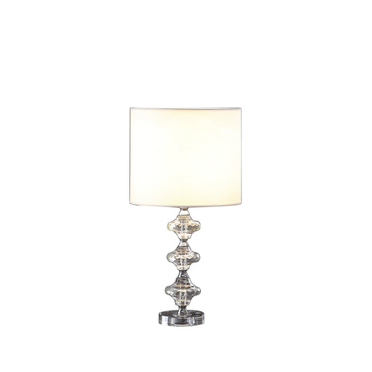 23" Silver Crystal Geometric Table Lamp With White Classic Drum Shade