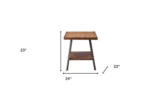 23" Sandy Black And Weathered Oak Manufactured Wood Rectangular End Table With Shelf