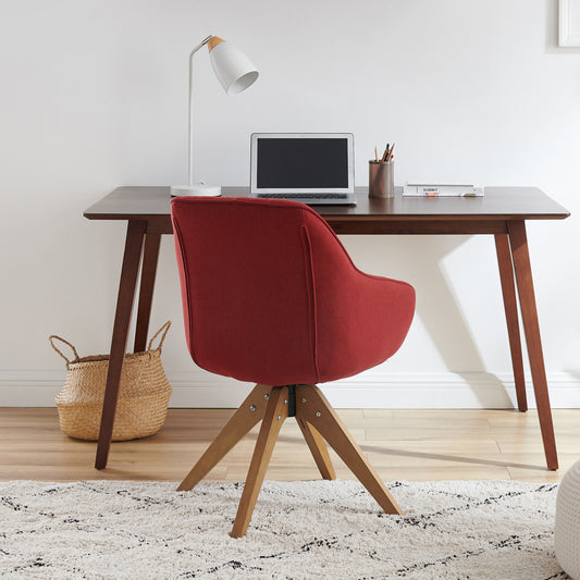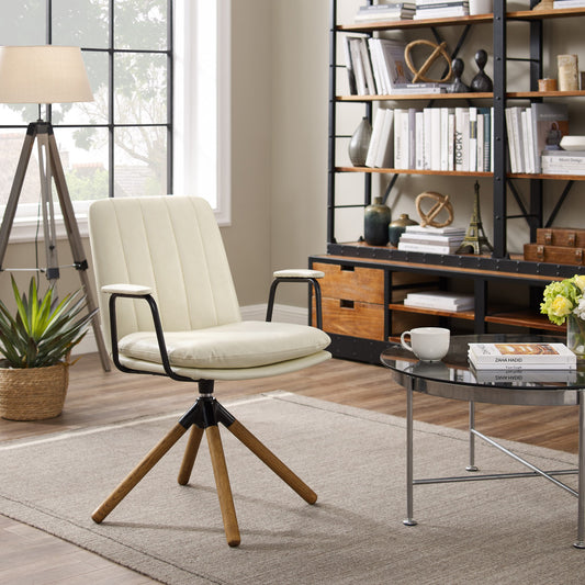 23" Off White Faux Leather And Brown Swivel Arm Chair