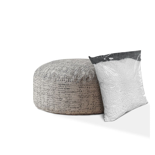 24" Beige Canvas Round Abstract Pouf Ottoman