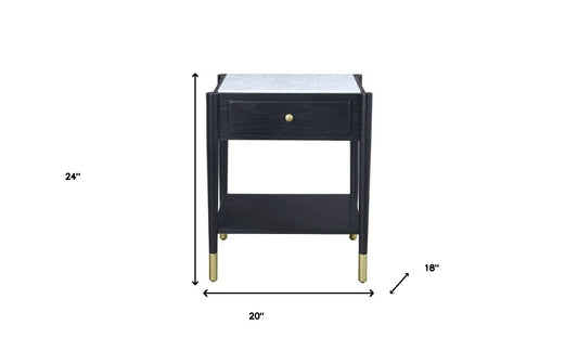 24" Black And White Marble And Solid Wood Rectangular End Table
