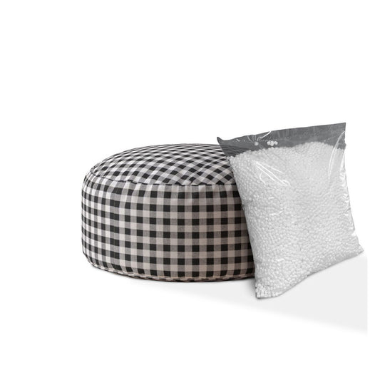 24" Black And Gray Cotton Round Gingham Pouf Cover