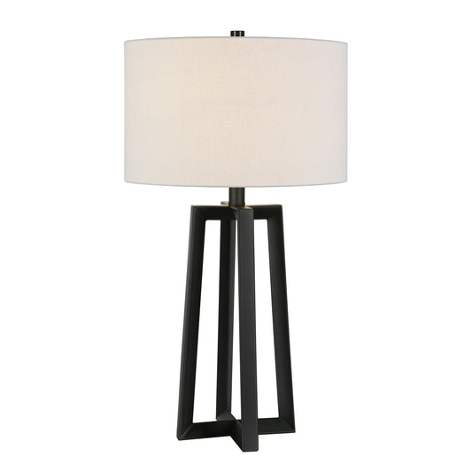 24" Black and Gold Metal Table Lamp With White Drum Shade