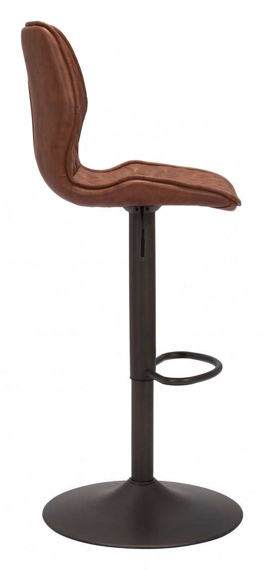 24" Brown And Black Faux Leather And Steel Swivel Counter Height Bar Chair With Footrest