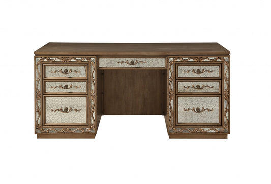 24" Gold Solid Wood Rectangular Credenza Desk With 7 Drawers