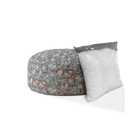 24" Gray And White Cotton Round Animal Print Pouf Ottoman
