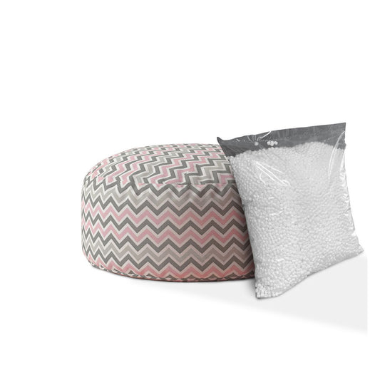 24" Gray Cotton Round Geometric Pouf Ottoman
