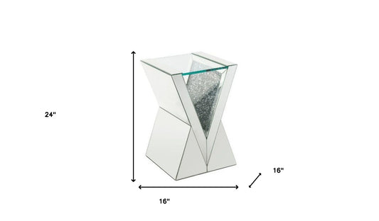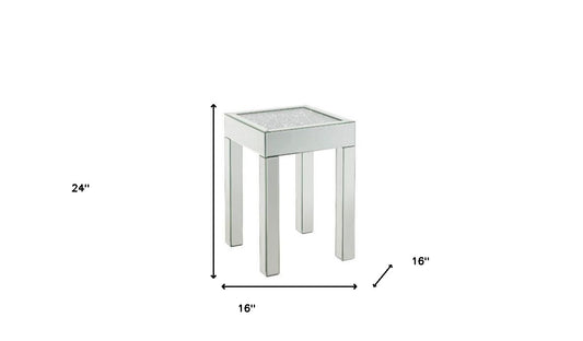 24" Silver And Clear Glass Square Mirrored End Table