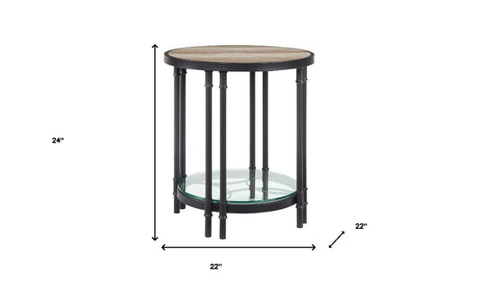 24" Sandy Black And Oak Manufactured Wood And Metal Round End Table With Shelf