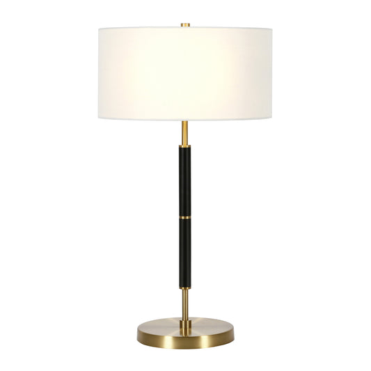 25" Black and Gold Metal Two Light Table Lamp With White Drum Shade