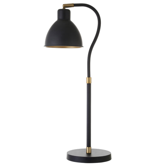 25" Black and Gold Metal Arched Table Lamp With Black Dome Shade