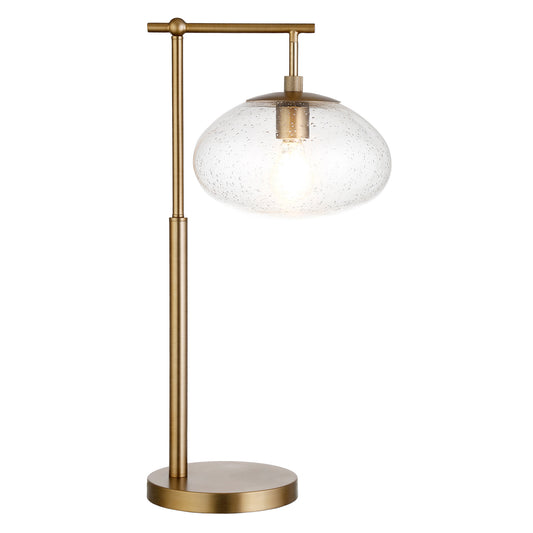 25" Brass Metal Arched Table Lamp With Clear Seeded Globe Shade
