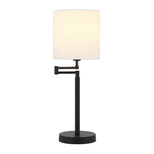 25" Black Metal Arched Table Lamp With White Drum Shade