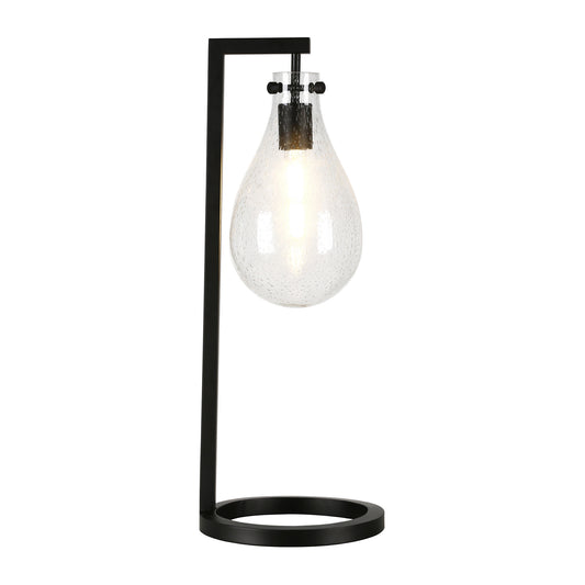 25" Black Metal Arched Table Lamp With Clear Seeded Globe Shade