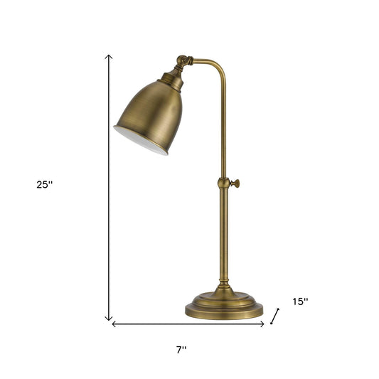 25" Bronze Metal Adjustable Table Lamp With Antiqued Brass Dome Shade
