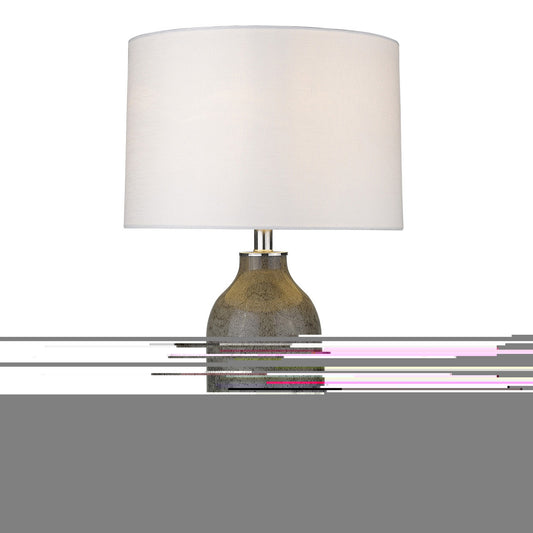 25" Silver Metal Gourd Table Lamp With White Tapered Drum Shade