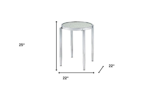 25" Sandy Black And Espresso Veneer And Metal Round End Table