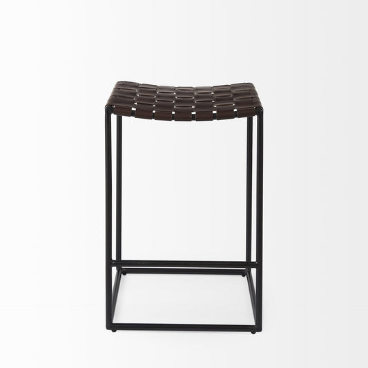 26" Brown Faux Leather And Low Back Counter Height Bar Chair