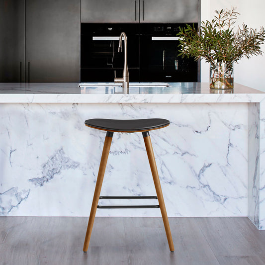 26" Brown And Black Leather Backless Counter Height Bar Chair With Footrest