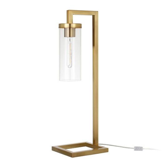 26" Brass Metal Table Lamp With Clear Cylinder Shade