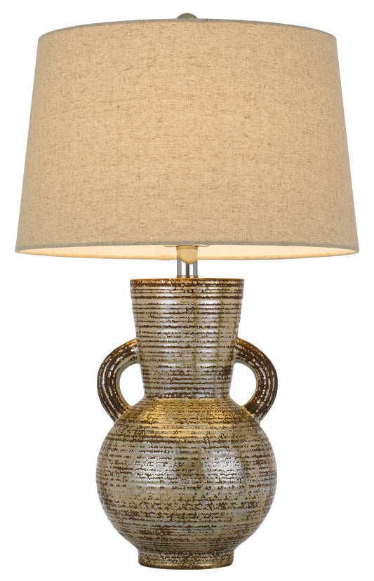 26" Bronze Ceramic Table Lamp With Brown Empire Shade