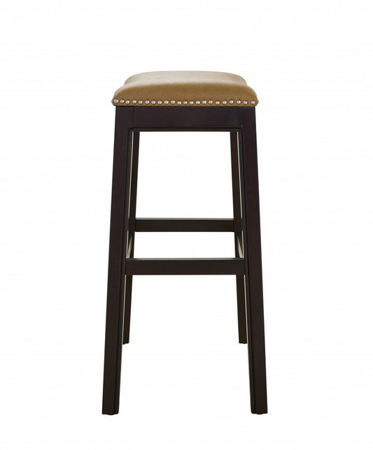 26" Tan and Espresso Backless Counter Height Bar Stool