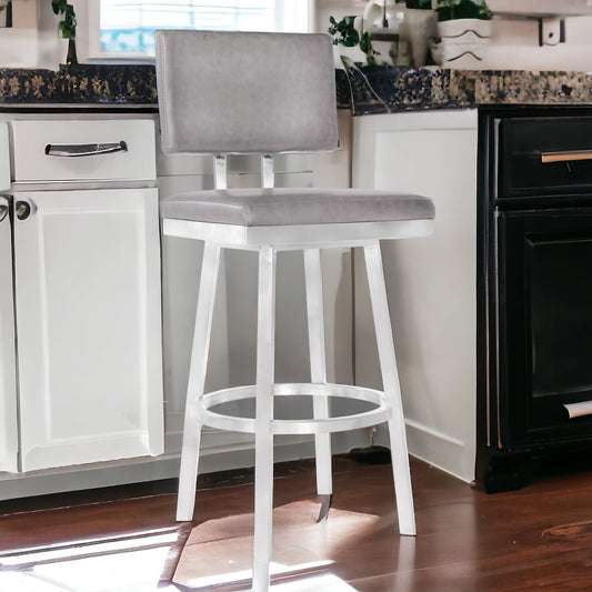 26" Transitional Grey Faux Leather Stainless Steel Swivel Bar Stool