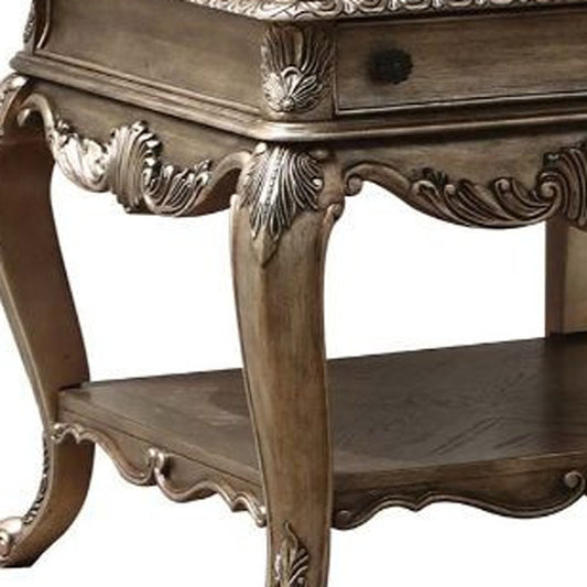 26" Vintage Oak Manufactured Wood And Polyresin Rectangular End Table With Drawer And Shelf