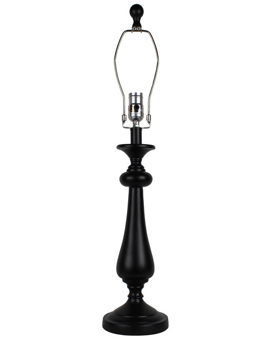 27" Black Candlestick Table Lamp With Ivory Duck Shade