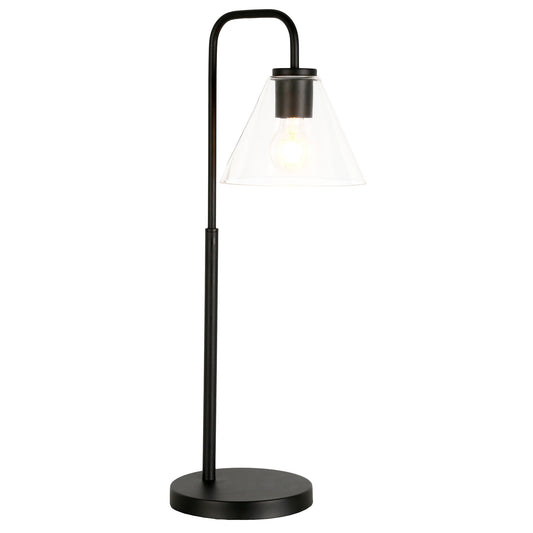 27" Black Metal Arched Table Lamp With Clear Cone Shade