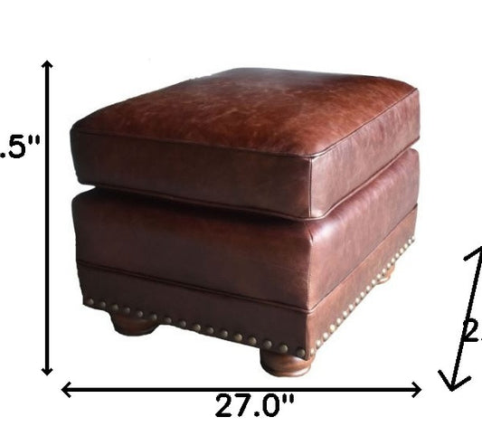 27" Brown Genuine Leather Ottoman