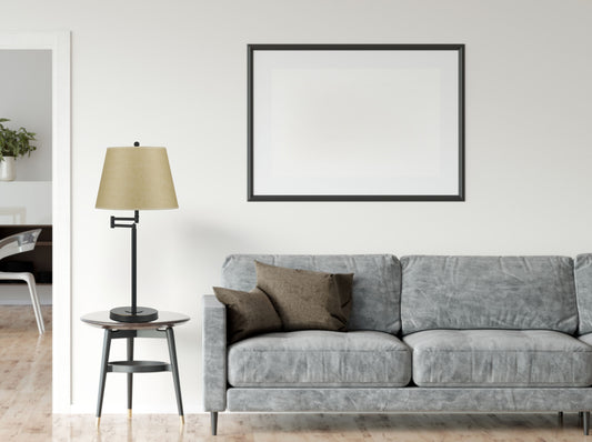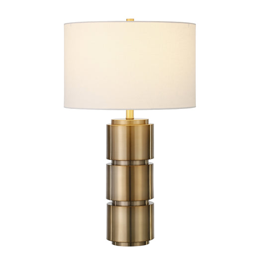 27" Brass Metal Table Lamp With White Drum Shade