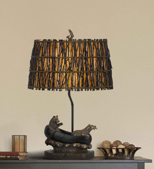 27" Bronze Bears in the Boat Table Lamp With Brown Novelty Shade