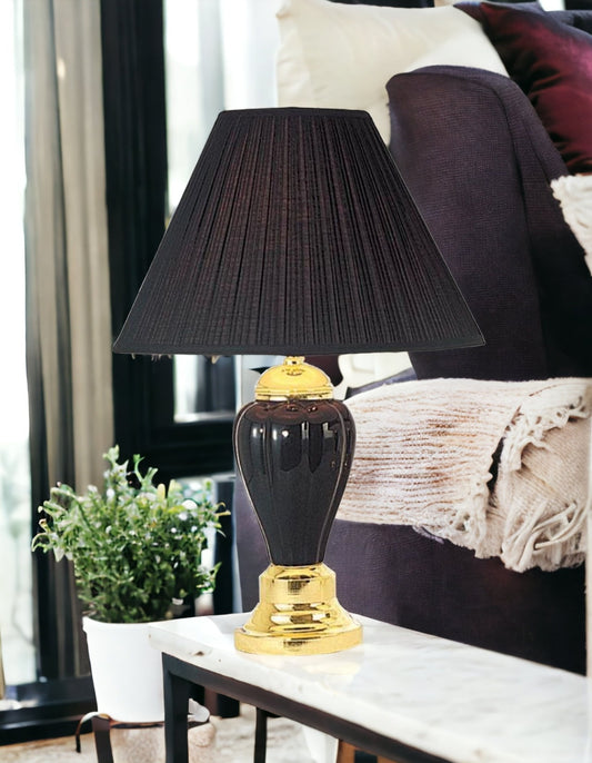 27" Gold Ceramic Bedside Table Lamp With Black Empire Shade