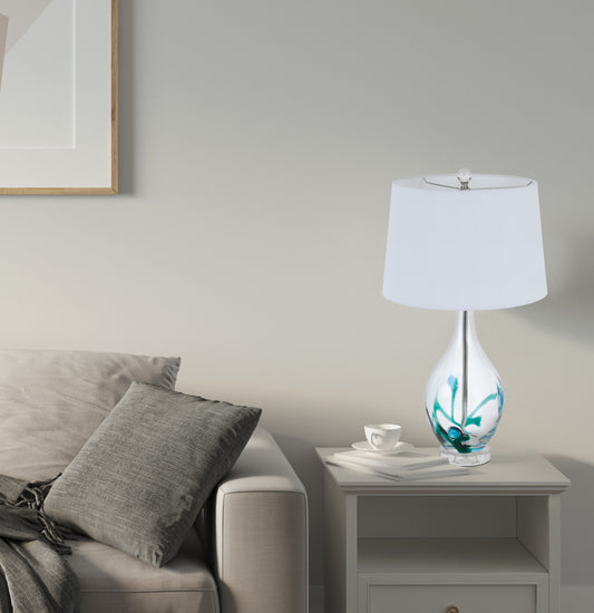 27" Clear Ceramic Table Lamp With White Empire Shade